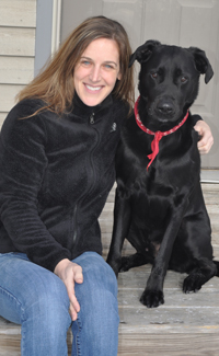 Dana Foster, employed by Salsbury‘s Organics, stands with her dog Iris Ann at her home, built by Bar Harbor Builders.